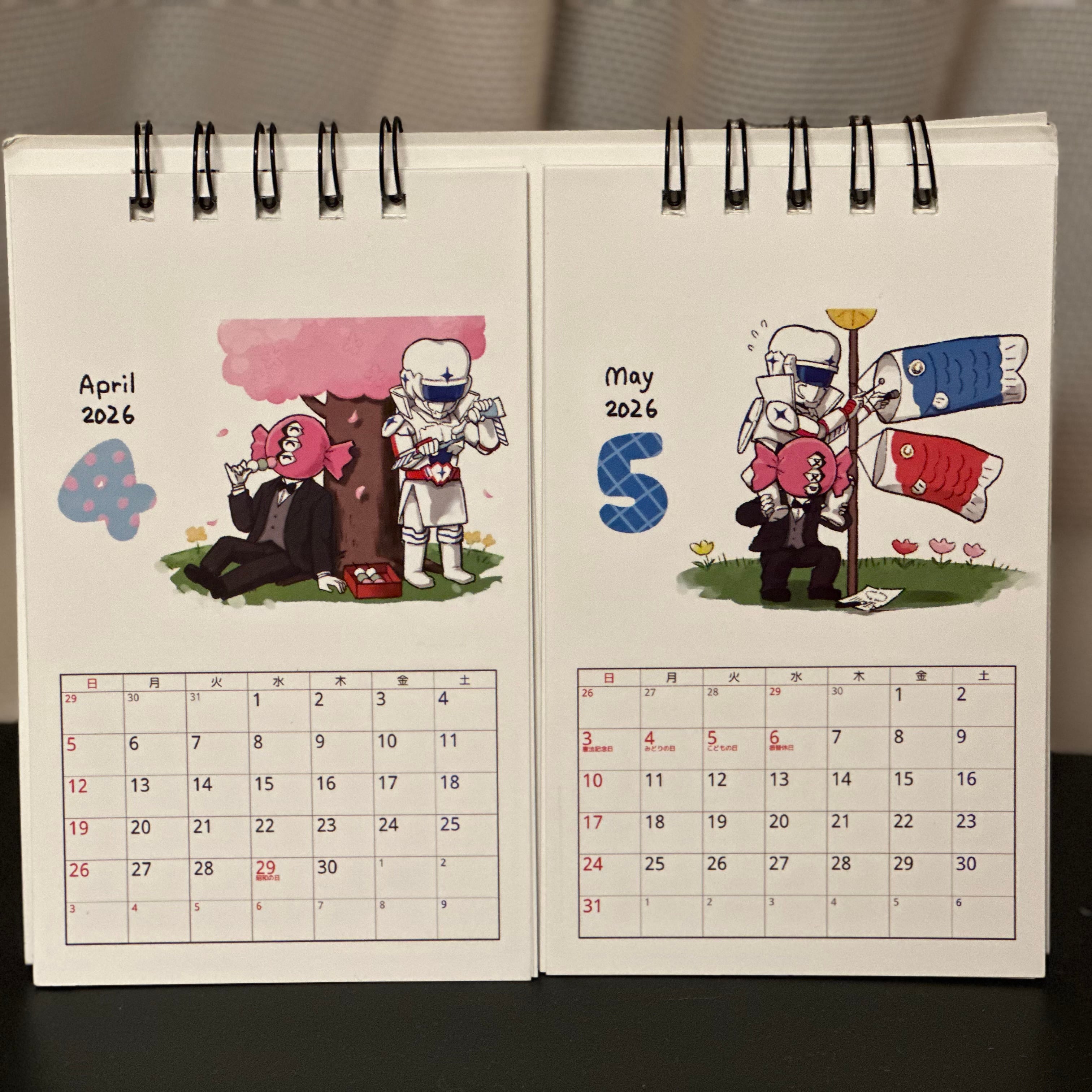 2ヶ月めくりカレンダーです。